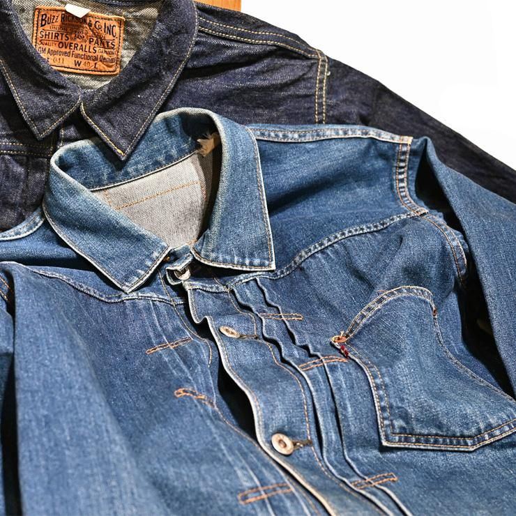 今回の"1953モデル"は腕幅がやや細く、加えて着丈もあるのでバランス良く着れるのが特徴です。ライバルモデルのシュガーケーンと比べるとその差が歴然なので是非、比べてください!この大切なポイントはホームページやSNSでは殆ど見られないので『知られていない事実/美点』です。デニムのセットアップを目指すなら是非、手に入れたい組み合わせです。