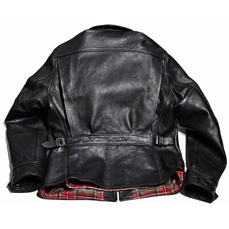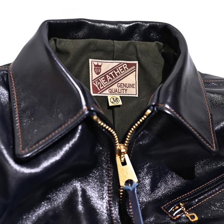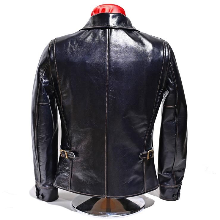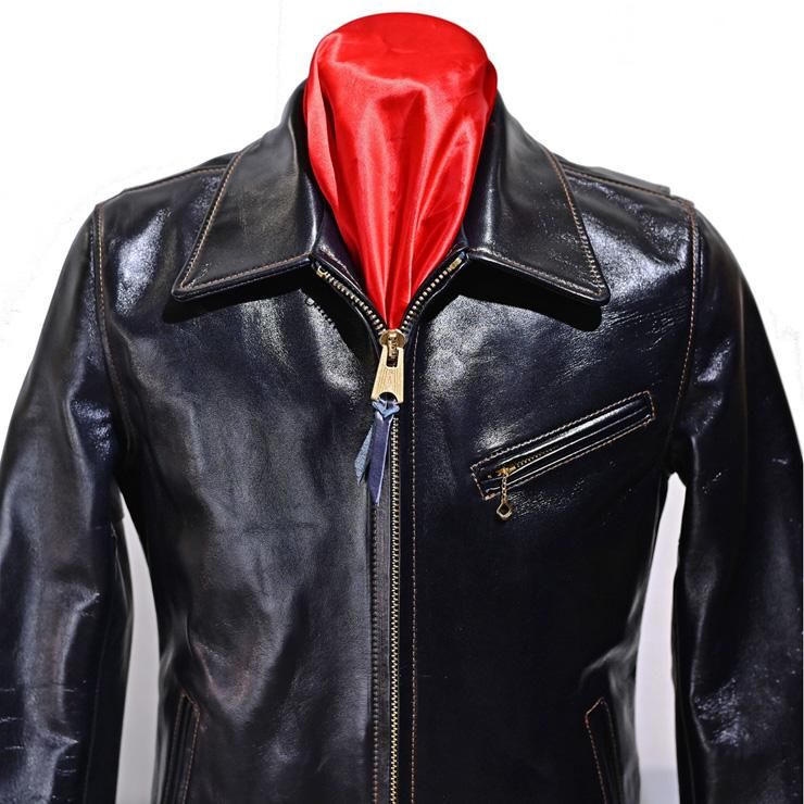 インディゴカラーの馬革は他社にも在りますが、Y’2のそれは今年で5〜6年目になるのでしょうか。ここへ来てやっと色合いが落ち着いてきたように思います。画像からも分かるとおり、銀面の綺麗さ、グロス(光沢)が優秀で高級感さえ感じられます。このジャケットは『一張羅の革ジャンが欲しい方』や『インディゴ色が好きな方』に着て頂きたいモデルです。他社に比べ価格が控え目なのも嬉しいです。是非、現物をご覧ください。