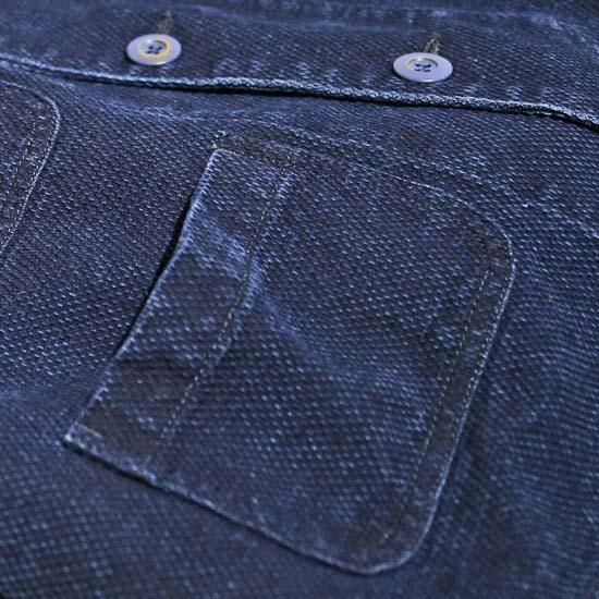 コットンの刺し子生地を用い、製品洗いによって着古した雰囲気を作り上げています。一重仕立てですが中肉厚生地なので秋冬に丁度良い素材感です。インナーからアウターまで用途は広いでしょう。素材やカラーを変えてシーズンごとにリリースされる彼等の定番モデルで、Marcy(マーシー)の名前が付けられています。