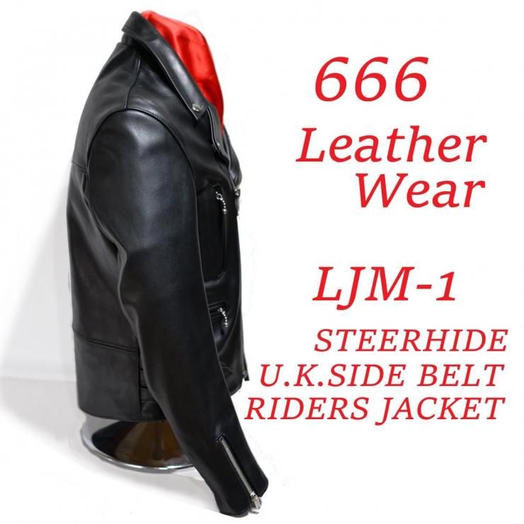 666 LEATHER WEAR UK Style STEERHIFR SIDE BELT RIDERS JACKET/REGULAR FIT "LJM-1"
