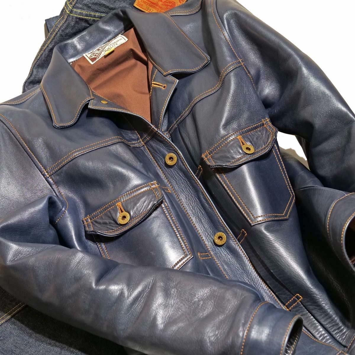 Y'2 LEATHER INDIGO HORSE 2ND TYPE JACKET/IB-141