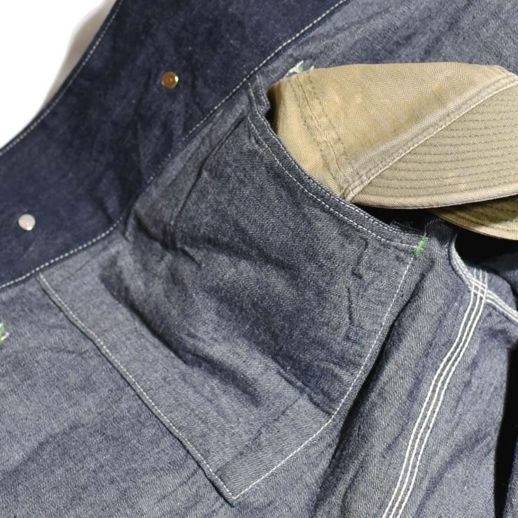 インナーでコントロールすれば通年で着用できる素材感と王道のカバーオールワークデザインが人気です。同素材のベストやパンツ、アップルジャックと呼ばれるキャスケットを合わせれば生粋のレイルローダースタイルも良いですが、あえてルールを持たない幅広い着こなしの方が新鮮です。Gジャン同様、数多く着ることが経年変化に繋がり良い味を生みます。頑張って着倒しましょう!