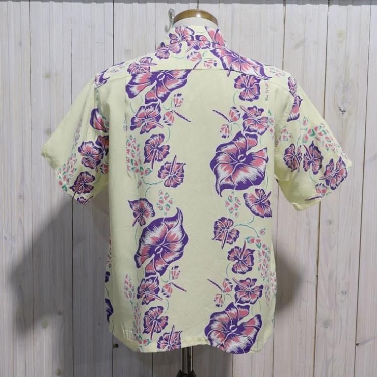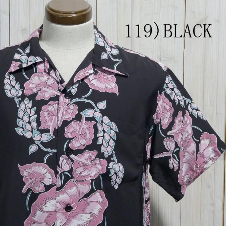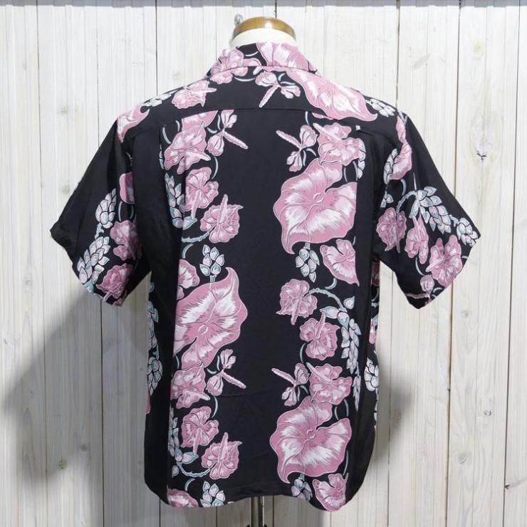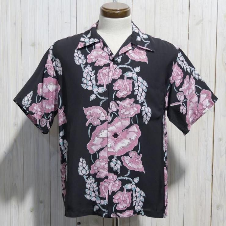 アロハシャツと言えば先ずはボーダー柄!と言っても過言ではないほど、一番イメージの認知度が高い所ではないでしょうか?まさにこの一枚もドンズバで王道なスタイルを醸し出している一枚!そう、だからこそやっぱり欲しくなる柄デザインなんですよね!そして南国の花が配される、見ているだけでもやっぱりアロハって良いな〜!なんて感じさせてくれるのは、先ずはド定番系のスタイルアイテムだからこそなんですよね〜。意外な着易さと嫌味の無さ、先ずはコレ外せない一枚ですね。