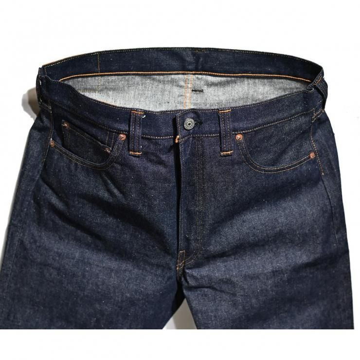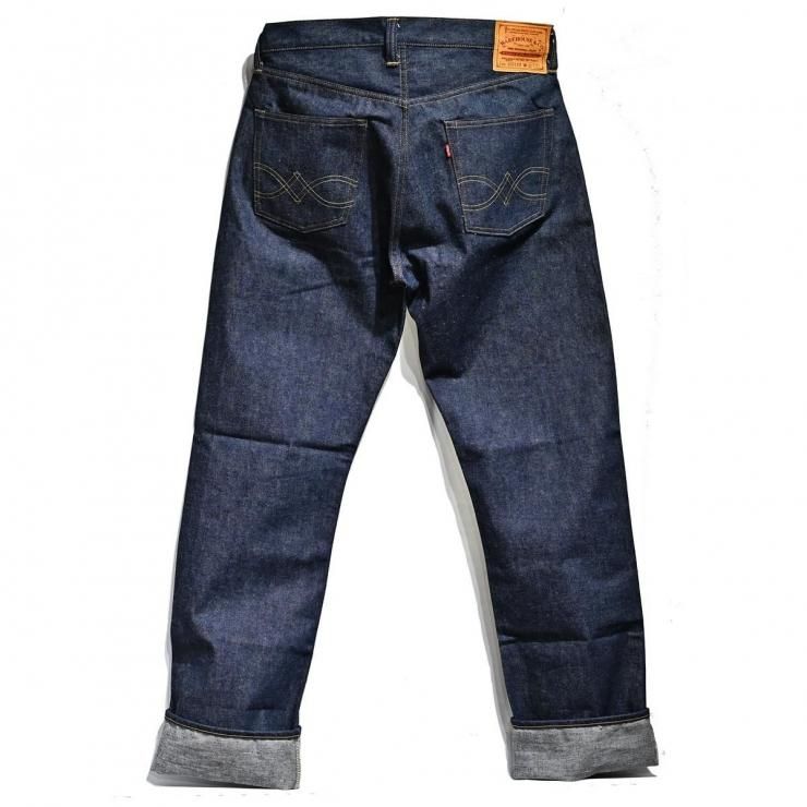 7.5番×7.5番/ピンクセルヴィッチデニムを使用した『1954年モデル』は、先にご紹介している『1953年モデル』のディテイルとシルエットを継承しています。全体的に余裕の出るストレートは、大胆にロールアップして穿く新たなスタイルを確立した1950年代を象徴する5ポケットジーンズのシルエットと言えるでしょう。