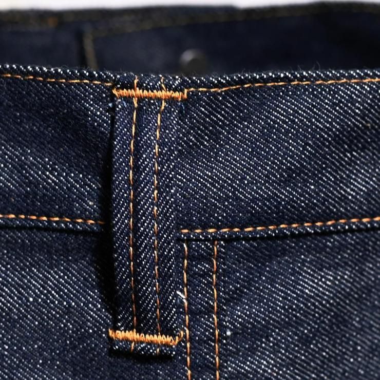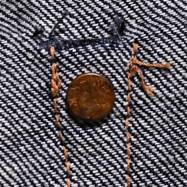 『1954年モデル』はバックセンターのベルトループが左にズレる縫製手法が用いられているのが特徴です。その他、2色使いの縫製ステッチなど、5ポケットジーンズが更なる量産に向けた生産体制が確立された時代のモデルです。