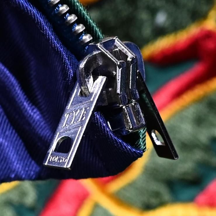 表生地:アセテートレーヨン100%、ライニング:アセテートレーヨン100%、ニットリブ:アクリル100%、刺繍:レーヨン糸、ジッパー:オリジナルデザイン
